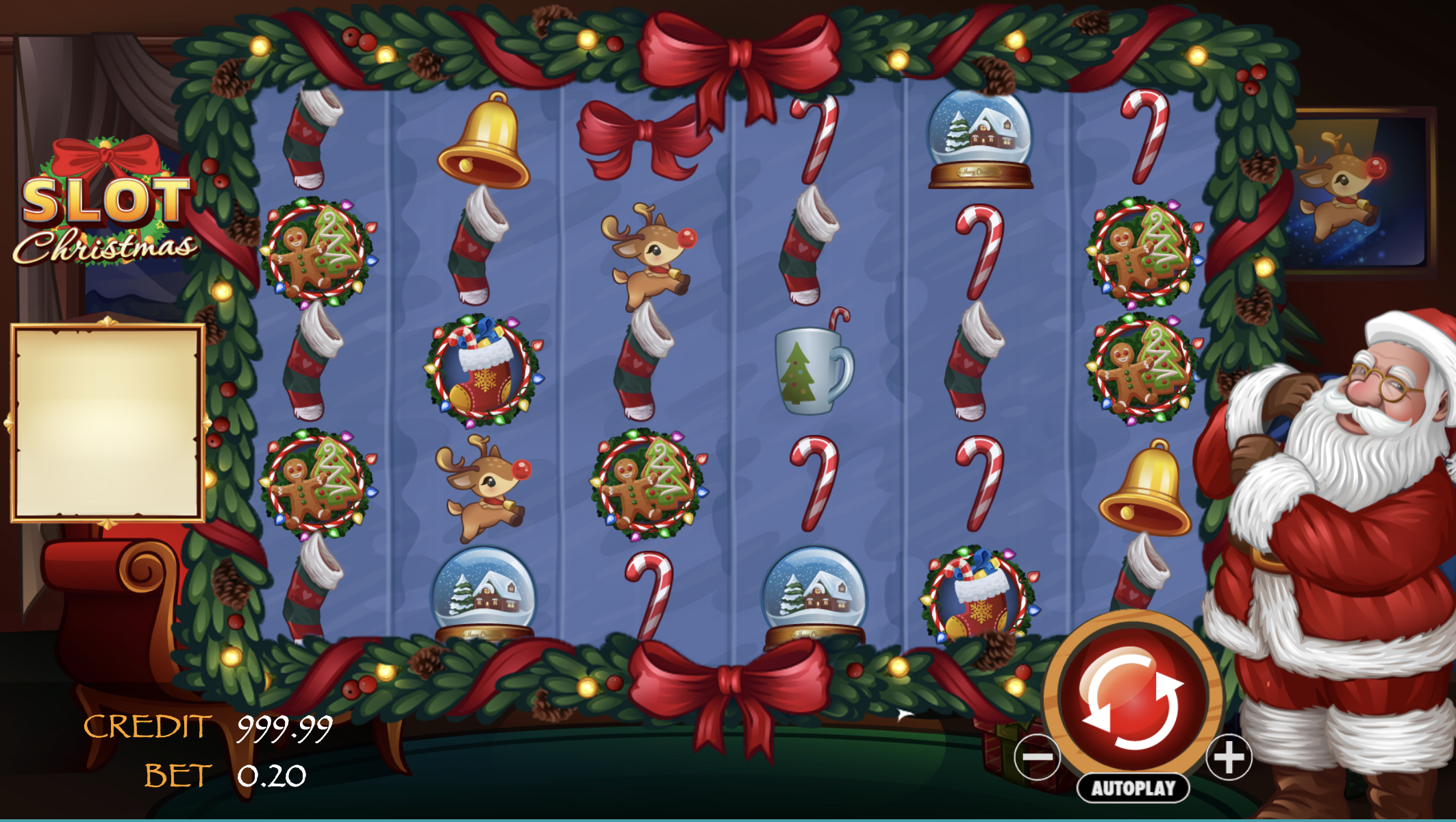 Bli med på en juletema-spinfest med Slot Christmas, en gratis virtuell spilleautomat på nett designet utelukkende for underholdning.